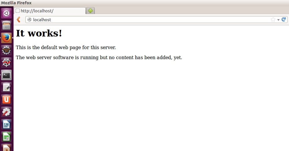 - Abra o Firefox e digite: localhost, você deve obter o site rodando no seu servidor web como na figura abaixo