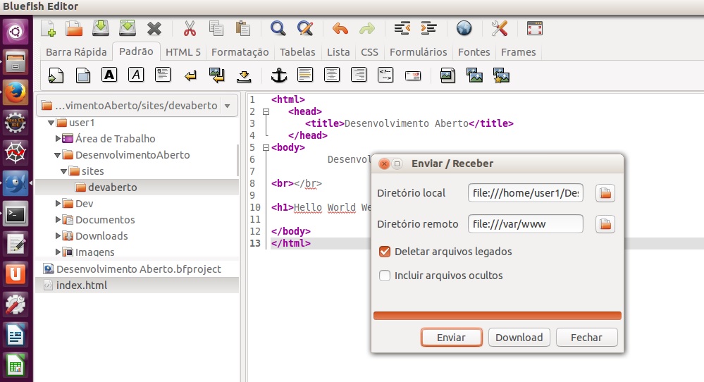 - Crie o diretorio: /home/user1/DesenvolvimentoAberto/Sites/devaberto, onde /home/user1 é o seu diretório do Linux.