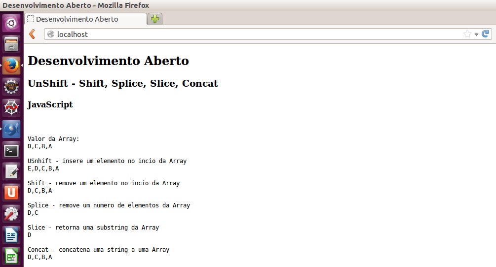 document.writeln("\nUSnhift - insere um elemento no incio da Array");