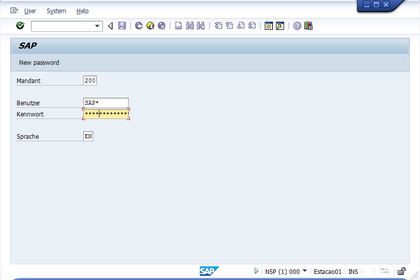 - Reinicie o servidor e conecte ao cliente 200 com o usuário SAP* e a senha pass.