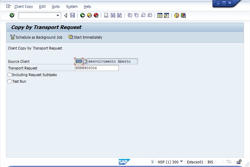 Não é permitido personalização ou desenvolvimento do trabalho neste cliente. Utilize este cliente para testar funções sem correr o riscos de alterações de dados. O administrador do sistema atualiza o cliente regularmente usando uma cópia do cliente 200.
