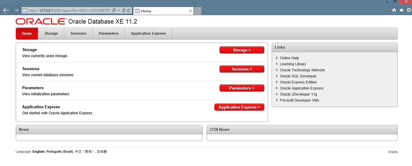 O Oracle utiliza um servidor web para gerenciamento e utilização do Application Express na porta 8080 no computador local, Digite localhost:8080 no seu navegador para abrir o servidor que está rodando no seu computador.