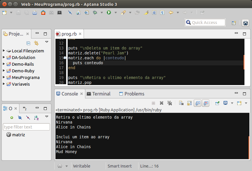 Como sabemos Ruby é uma linguagem de programação puramente orientada a objeto, então um Array em Ruby é um objeto pertencente a classe Array. A matriz é muito parecida com um objeto da classe Hash, entretanto um objeto Array é uma coleção indexada por números inteiros.