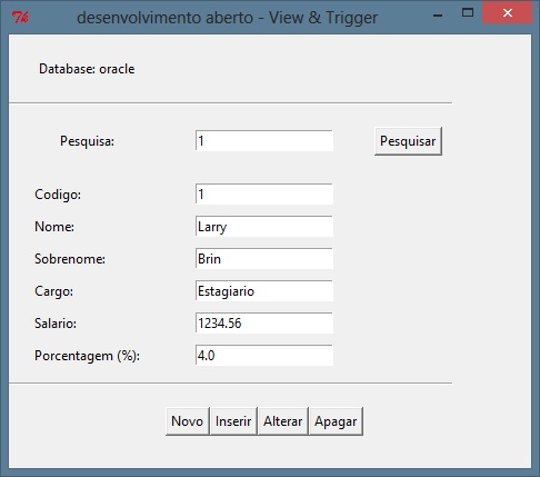 Você encontra uma visão contendo duas tabelas relacionadas, a tabela Funcionários e Desconto, e a partir de uma trigger utilizamos o evento “ao invés de inserir” para distribuir os dados para suas respectivas tabelas. Na aplicação Python o campo porcentagem se encontra em outra tabela, você pode utilizar este exemplo básico para criar cadastros mais complexos.