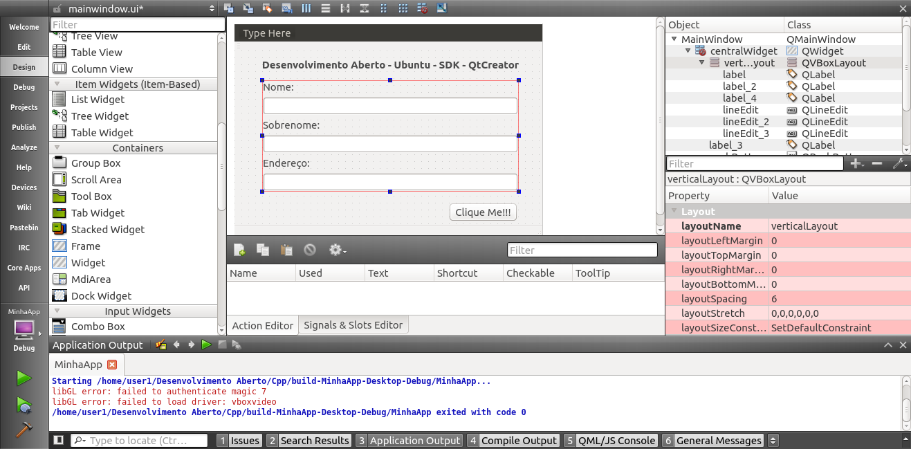 12 – Pronto, você já criou seu primeiro programa utilizando os recursos básicos dos Widgets Qt utilizando o Kit de desenvolvimento do Ubuntu: