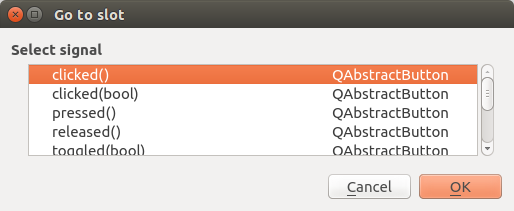 10 – Após terminar o design do formulário, para criar o evento de clique do botão, selecione o componente PushButton, clique com botão direito do mouse e escolha a opção Go to Slot e na janela seguinte escolha o método Clicked() e clique OK: