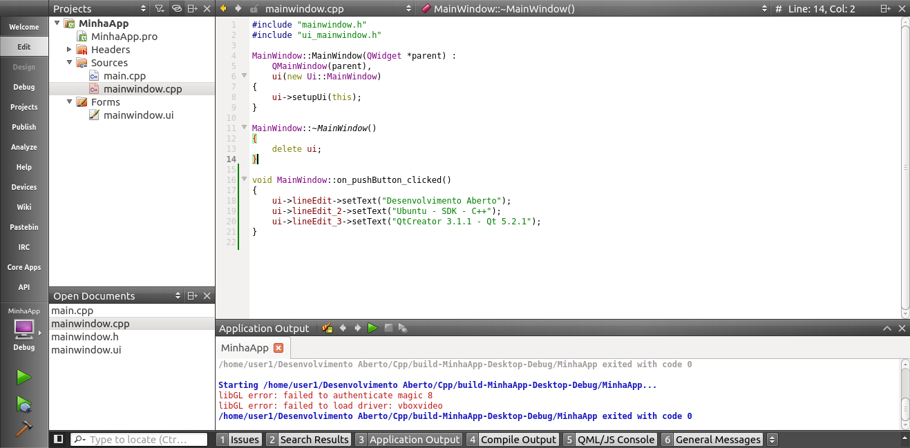 ui->lineEdit->setText("Desenvolvimento Aberto");