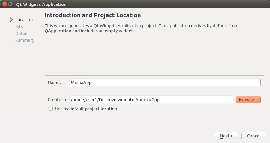 Neste exemplo criamos um aplicativo básico C++ utilizando os Widgets Qt.