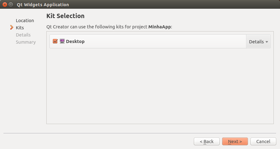 6 – Na janela Kit Selection escolha Desktop e clique em Next: