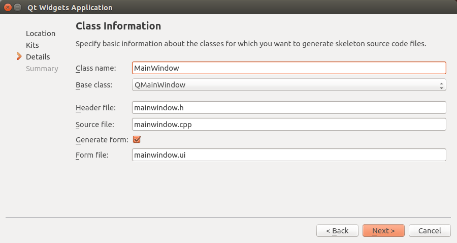 7 – Na janela Class Information podemos mudar os nomes de arquivos para a classe do projeto, neste primeiro momento apenas clique em Next: