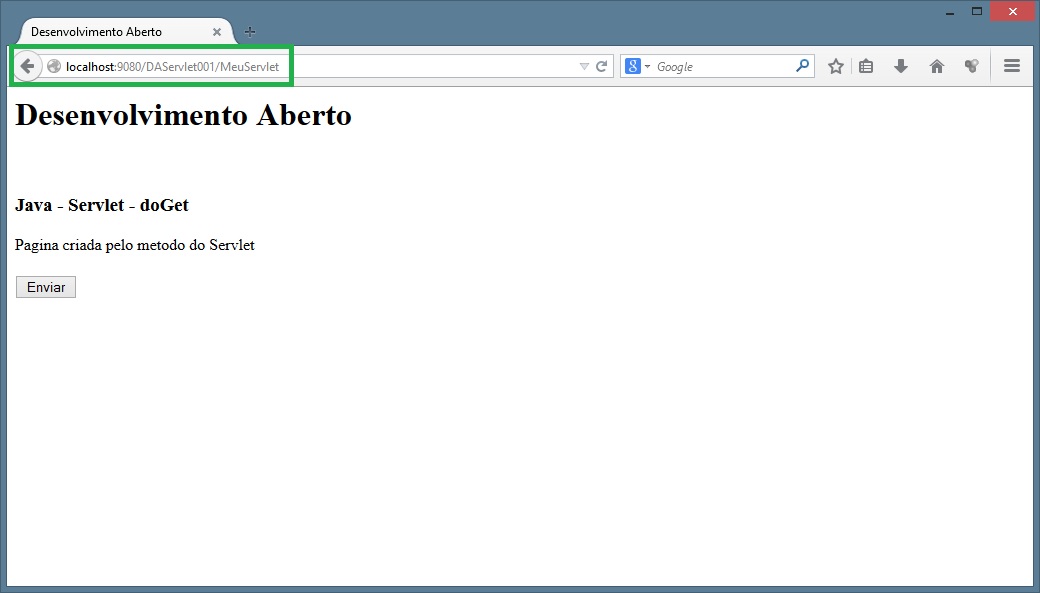 2 – Como você pode ver nós criamos uma pagina html através do método doGet, ele é automaticamente disparado assim que o servidor processa a url da nossa aplicação :