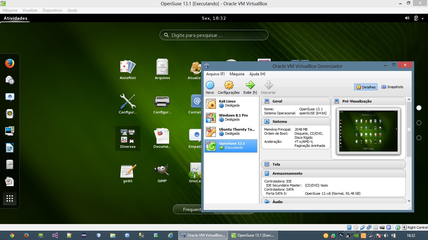 Plataforma: Oracle Virtualbox no Windows 8 atualizado e Windows 8.1: