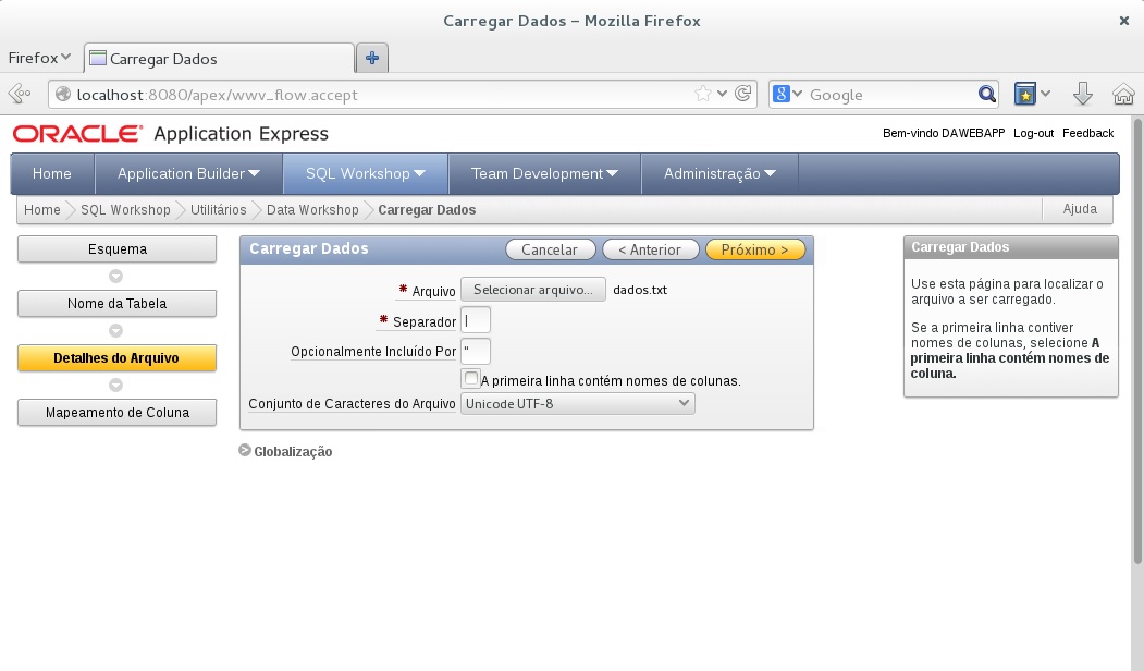 O SQL WorkShop nos possibilita através de seu menu de utilidades importar e exportar dados no formato texto, XML ou no formato de planilhas. O processo ocorre através de Wizards que guia o desenvolvedor passo a passo, navegando através de suas opções.