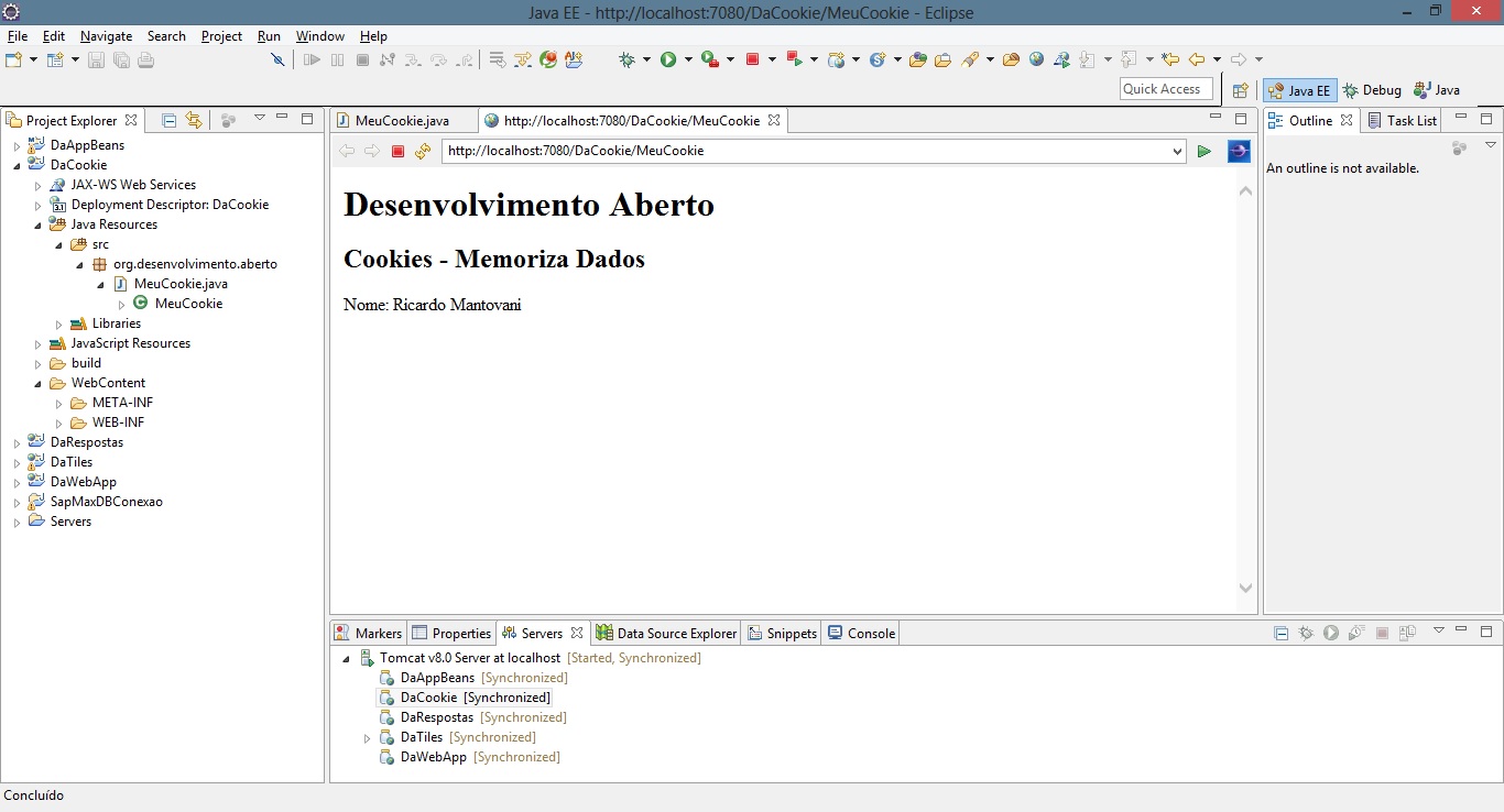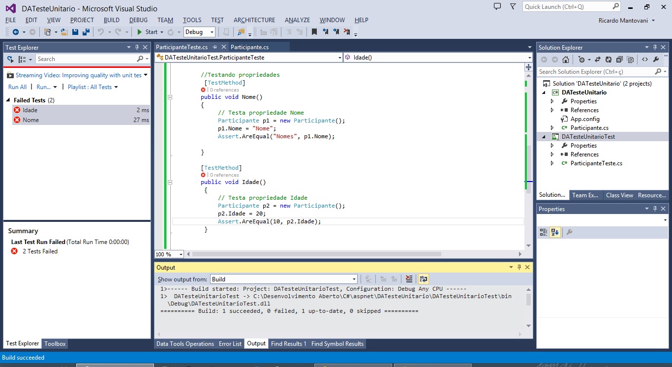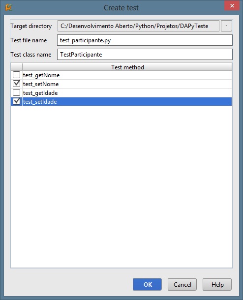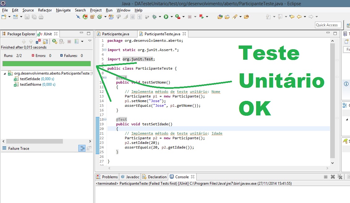 Neste exemplo criamos uma simples classe com métodos Getter e Setter e uma classe de caso de teste para efetuar um teste unitário nos métodos criados.