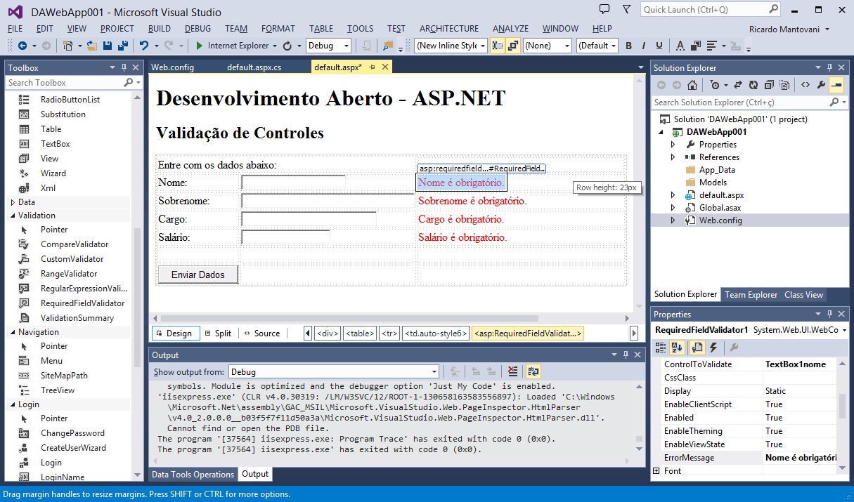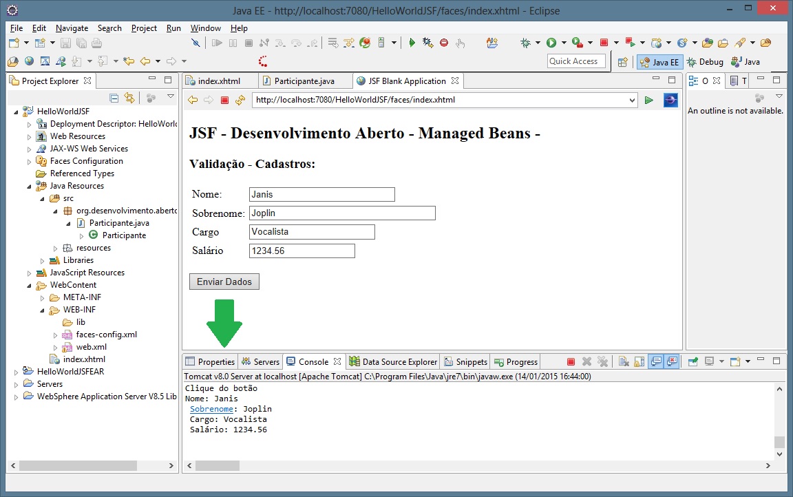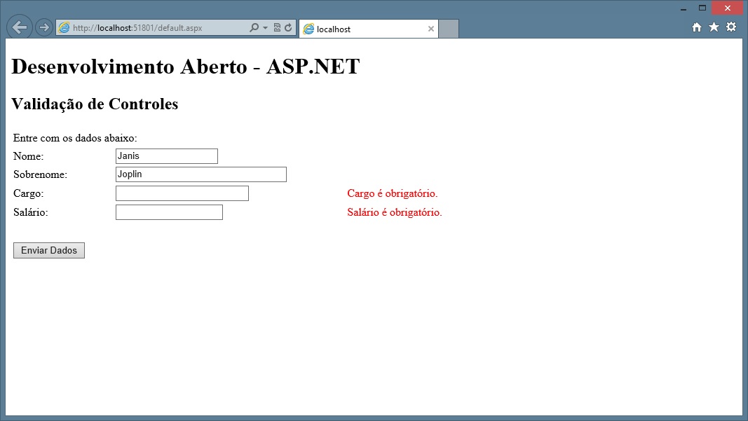 4 – Teste a sua aplicação entrando e saindo do campo de texto para o nome e o evento javascript será disparado: