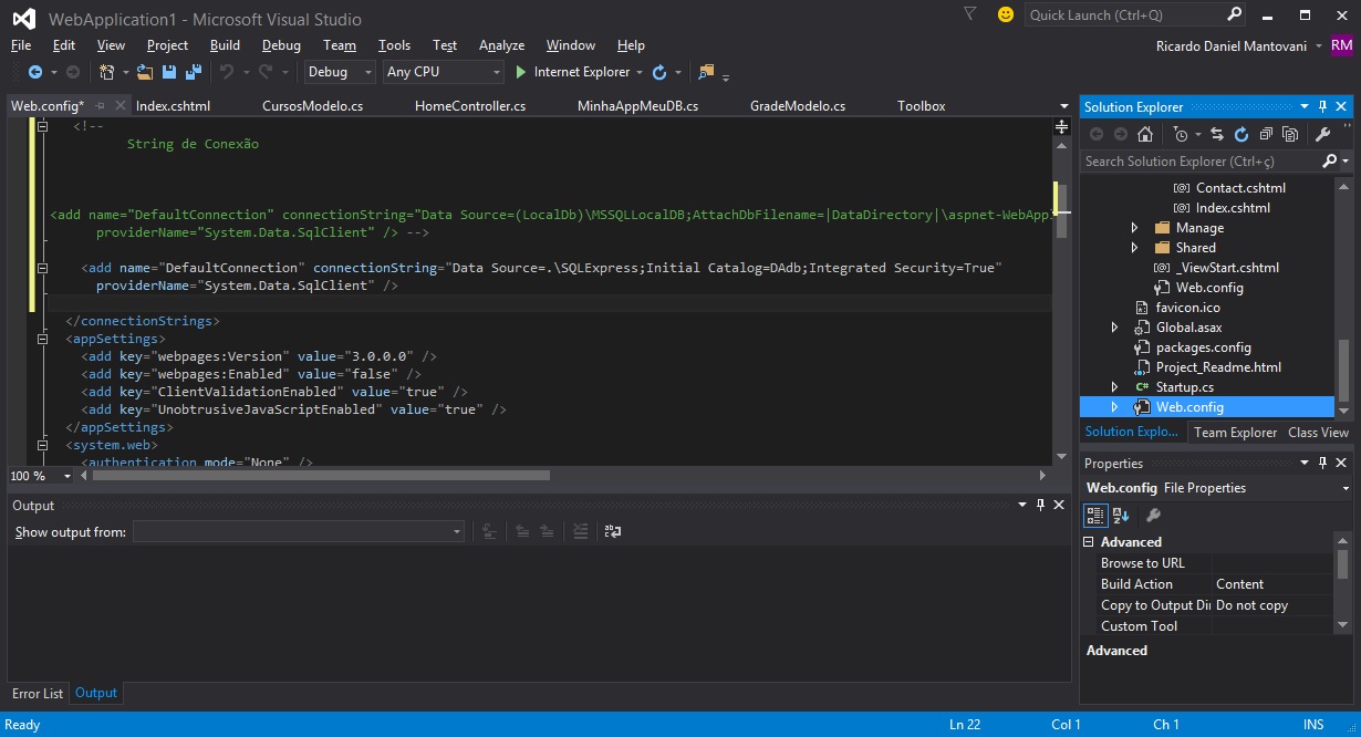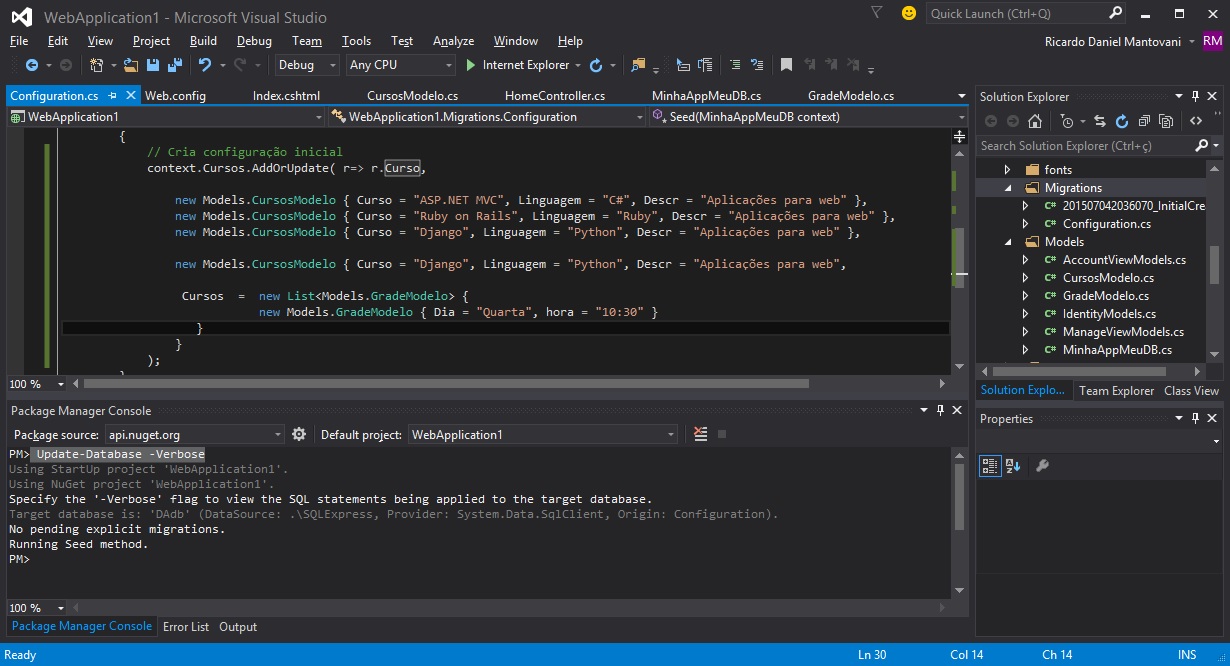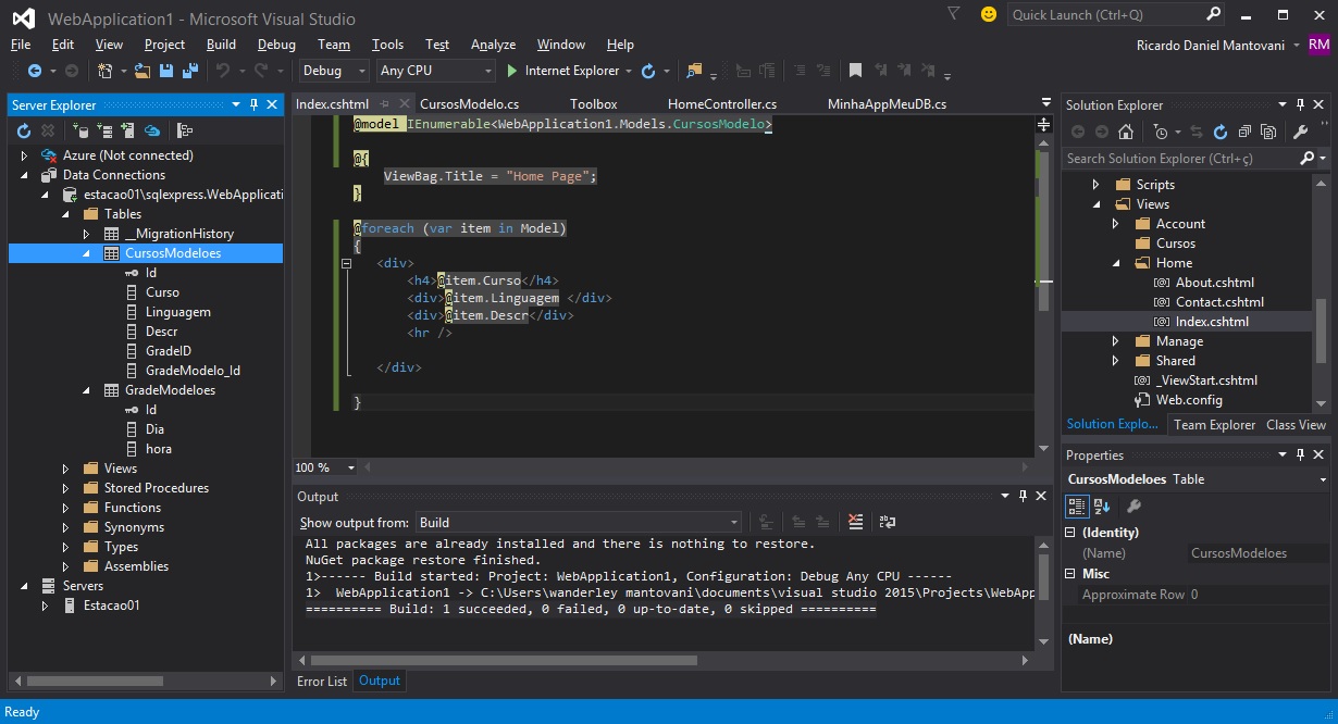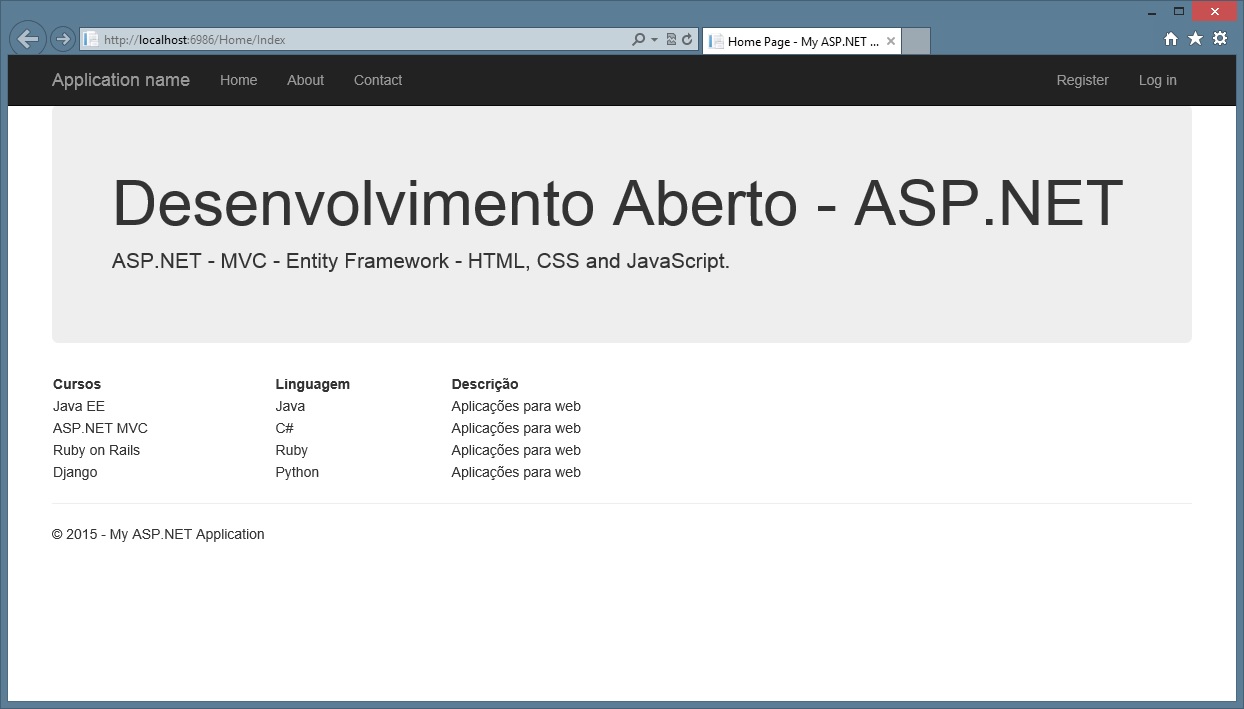 1 – Crie uma aplicação C# – MVC Razor, utilize o exemplo anterior para criar os modelos, visões e Scaffold para que você obtenha um CRUD totalmente funcional sem que tenha que escrever linhas de código.