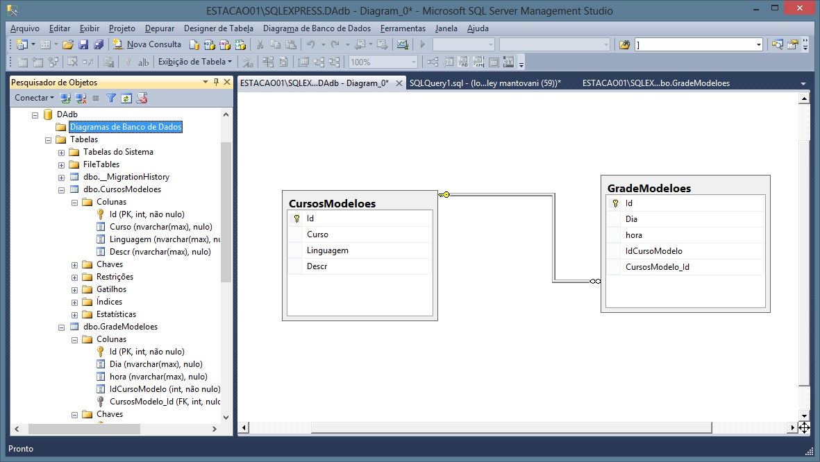 3 – Crie um novo Scaffold para o modelo grade e alimente os dados utilizando os identificadores do cadastro anterior, visto que neste momento você ainda não pode vê-los, pois não são exibidos na View. Os identificadores são sequenciais, você pode utilizar a instrução Select no SQL Studio para visualiza-los ou pode exibi-los na sua View de cadastro adicionando mais um campo para ser exibido se desejar.