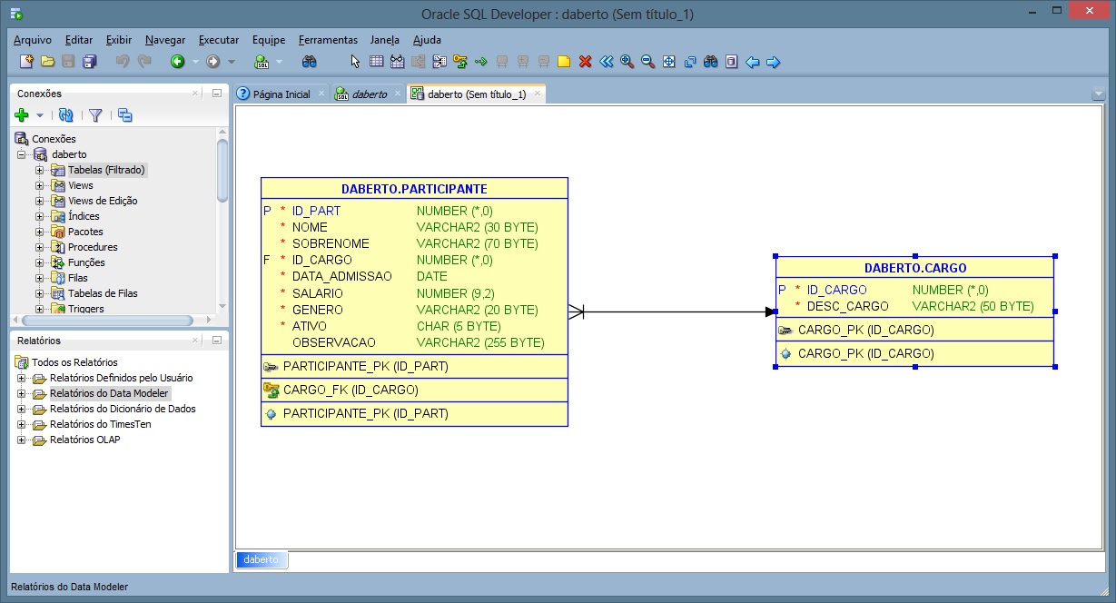 1 – Primeiro crie duas tabelas e seus respectivos objetos no banco de dados Oracle, atente-se para a chave estrangeira que cria o relacionamento entre as tabelas usando a chave primaria da tabela pai: