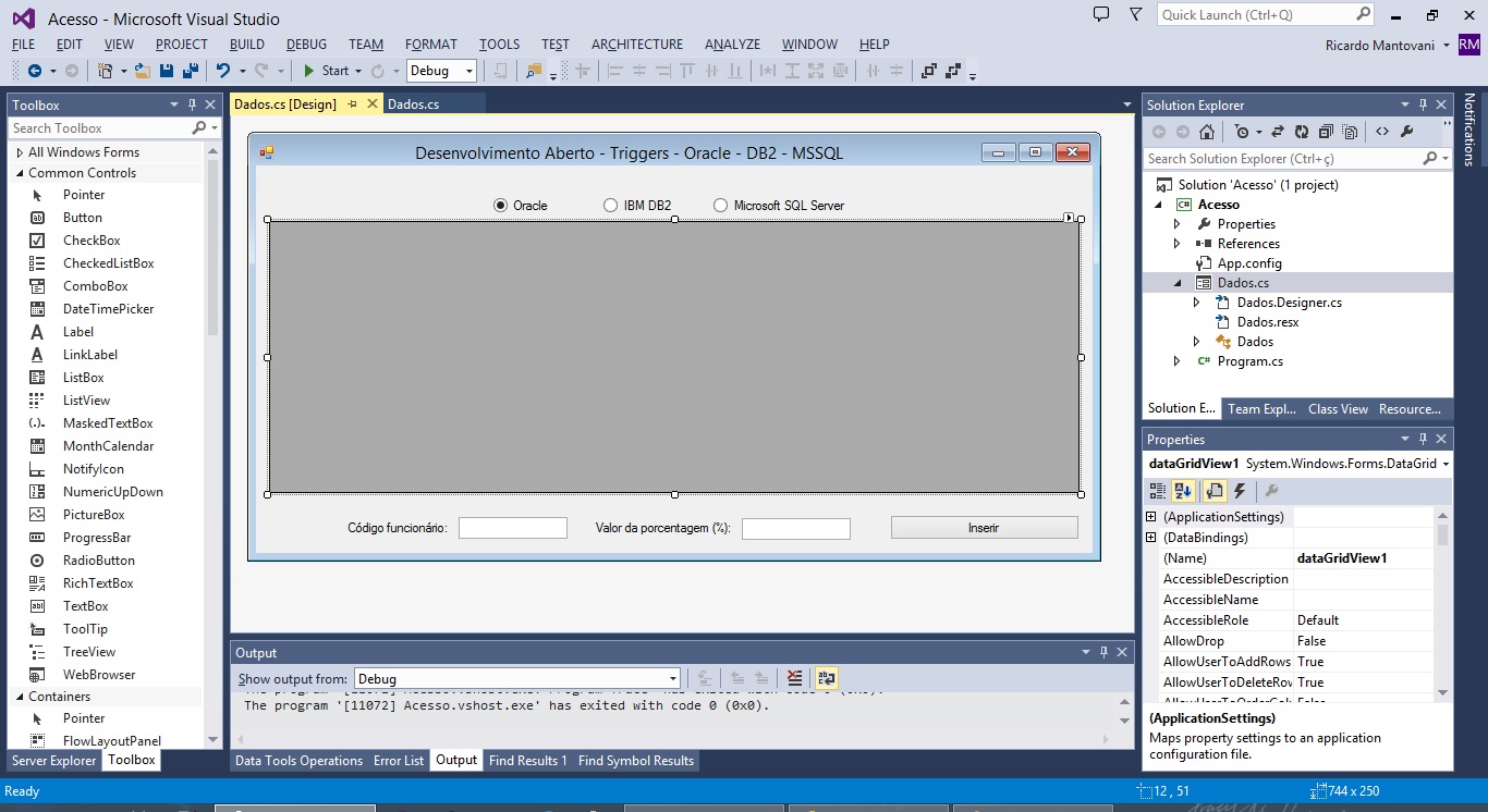 Você encontra um walkthrough de como instalar os bancos de dados, seus drivers e a configuração da IDE Visual Studio na categoria SQL e C#, use a imagem abaixo para referencia de como criar design utilizando, 3 Panels, 8 Labels, 7 TextBox e 5 Buttons: