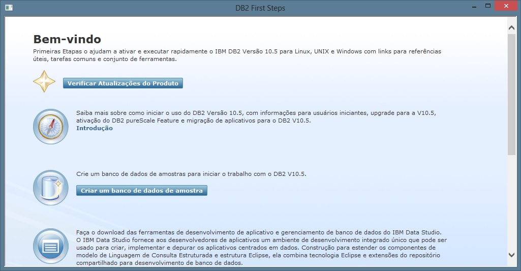 Neste exemplo usamos o driver JDBC DB2 para efetuar uma conexão no banco de dados, para criar o banco de dados você pode usar nosso walkthrough de como instalar as o banco de dados IBM DB2 Express-C e a ferramenta IBM Data Studio.